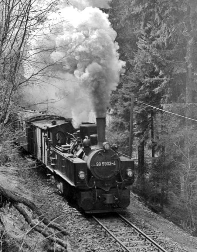 Bild oben: Die 99 5902 kämpft sich durch den Schnee. Copyright: Joachim Bügel / Slg. Eisenbahnstiftung