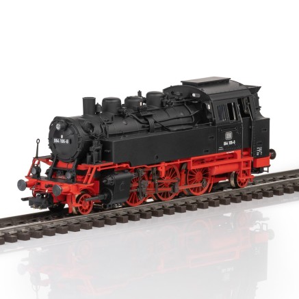 Die kleine BR 64 in der Version der DB in der Epoche IV (064) ist mit Telex-Kupplungen und einem Rauchsatz ausgestattet.